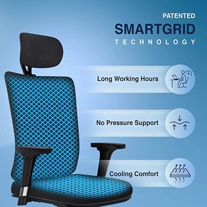 Patented SmartGRID Technology – Onyx seat & back support are designed with our Patented SmartGRID Technology which cradles your tailbone and provides extra cushioning to your tushy for long working hours. Be it in an office or WFH setup SmartGRID No Pressure Support allows your spine to stay in its natural posture and gives you a feeling of weightlessness. Not just that it has multiple air channels to ensure your seat & back stay cool and comfy.